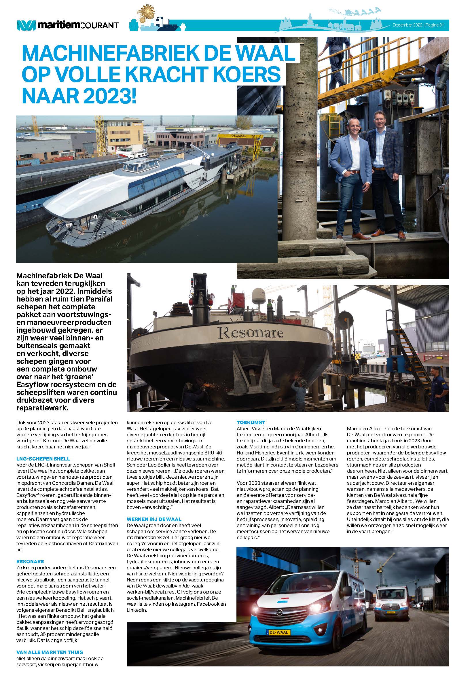 Machinefabriek De Waal kijkt tevreden terug op het jaar 2022. Voor 2023 staan er vele projecten op de planning. Daarnaast wordt de verdere verfijning van het bedrijfsproces voortgezet. Kortom; De Waal zet op volle kracht koers naar het nieuwe jaar!